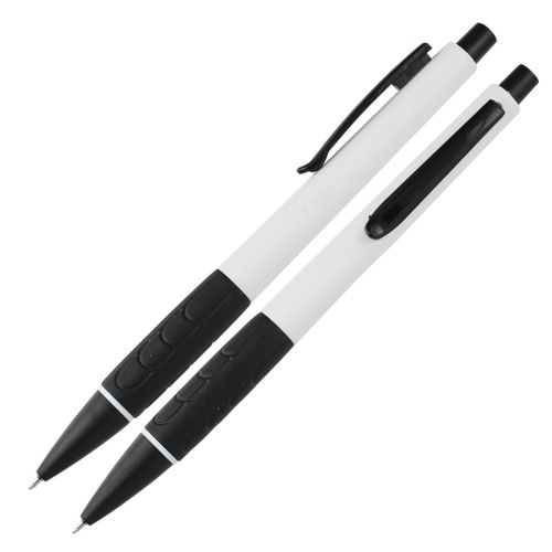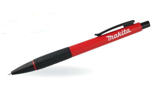 OPIS: Długopis wykonany z tworzywa, posiada ergonomiczną gumkę, kolorystyka elementów ZAWSZE czarna /patrz galeria/