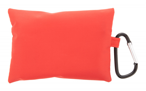 OPIS: Apteczka pierwszej pomocy w zapinanym na suwak nylonowym etui z karabińczykiem. Zawiera: nożyczki, 1 chusteczkę oczyszczającą, 1 bandaż z gazy, 3 waciki, 5 bandaży samoprzylepnych i taśmę samoprzylepną.