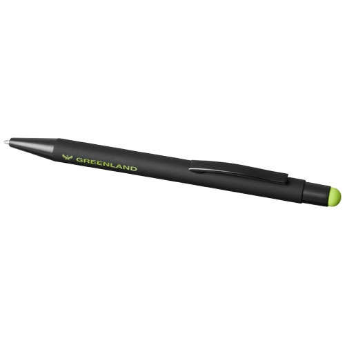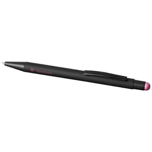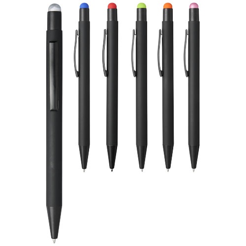 OPIS: Długopis z gumowym rysikiem typu touch pen. Długopis o matowym korpusie z końcówka do ekranów dotykowych oraz z możliwością wykonania graweru lustrzanego. Gumowany długopis automatyczny z rysikiem. Kolor końcówki rysika pasuje do laserowo wygrawerowanej warstwy spodniej długopisu. Długopis posiada metalowy klips, gumowy rysik i jest wykonane z aluminium. Żywotność: 450 m. Metal.