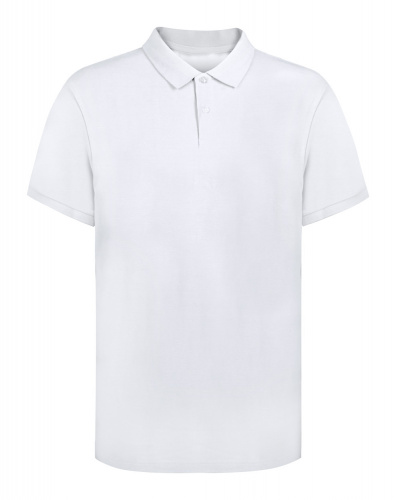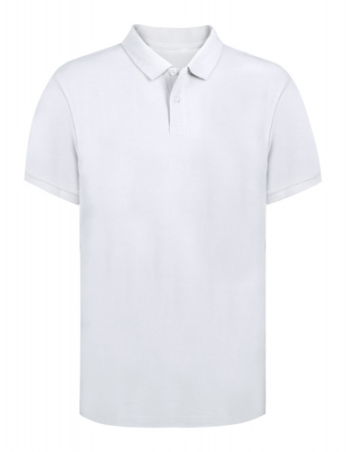 OPIS: Biała koszulka polo z pikowanej tkaniny z dwoma guzikami przy szyi w tym samym kolorze. 100% bawełny ring-spun, 220 g/m².