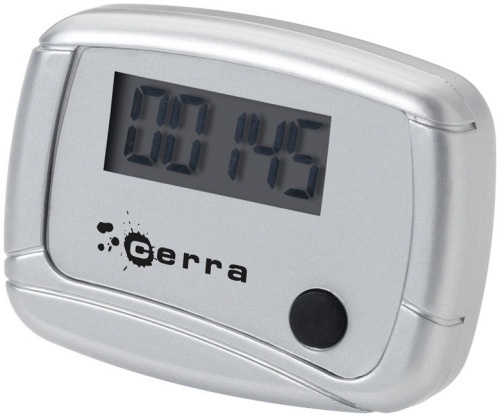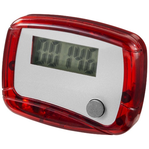 OPIS: Krokomierz In shape w kształcie prostokąta z transparentną, kolorowa obudową oraz srebrną powierzchnią pod zdobienie w formie nadruku. Liczy ilość wykonanych kroków i wyświetla na prostokątnym z sześcioma miejscami wyświetlaczu . Ma zapięcie do paska w formie klipsa, oraz posiada automatyczny wyłącznik. Dołączone baterie w komplecie, czyli produkt gotowy bezpośrednio do użytku. Plastik.
