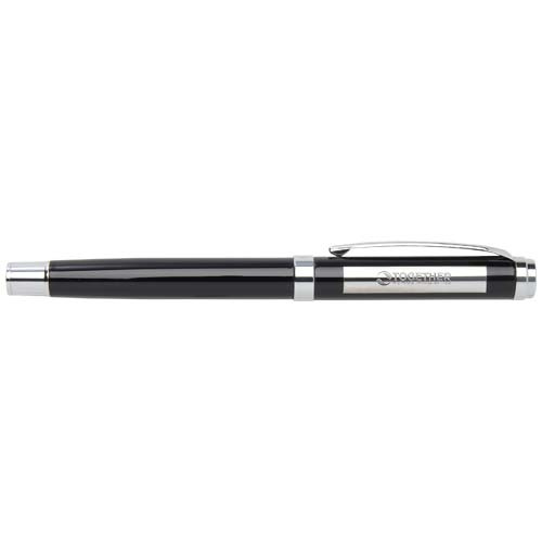 OPIS: Elegancki zestaw Legato zawierający notatnik A5 i długopis żelowy. Górna część korpusu długopisu wykonana jest z mosiądzu pochodzącego z recyklingu z certyfikatem RCS, z wykończeniem w kolorze srebrnego chromu, a dolna część korpusu wykończona jest lakierowana w kolorze. Długopis ma metalowe detale w kolorze srebrnego chromu oraz logo LUXE na środkowym pierścieniu. Kolor tuszu: Niebieski. Wydajność: 400 metrów. Grubość linii: 0,7 mm. W zestawie dodatkowy wkład w kolorze czarnym. Notes zawiera 80 kartek papieru w linie o gramaturze 80 g/m² w kolorze kremowym, okładkę z tworzywa sztucznego z recyklingu przypominającego skórę, elastyczne zamknięcie, wstążkową zakładkę i kieszonkę typu harmonijkowego. Srebrny chromowany metalowy dodatek na elastycznym zapięciu. Sprzedawane w ozdobnym pudełku kartonowym.