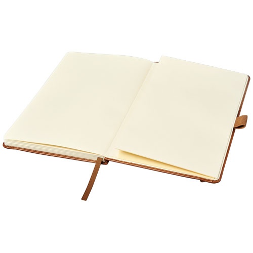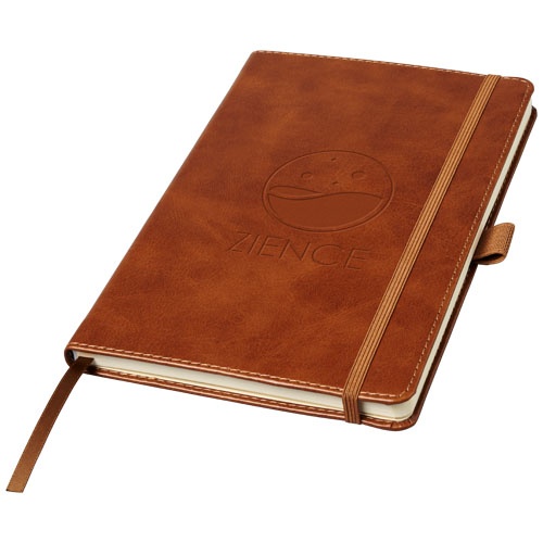 OPIS: Notatnik A5 Coda w twardej oprawie z imitacji skóry. Notatnik A5 w twardej oprawie z imitacji skóry (thermo PU) ze szwami wokół krawędzi i okrągłym grzbietem, zapakowany w obwolutę upominkową Luxe. Specyfikacje: Papier 70 g/m2, 80 arkuszy papieru kremowego w linie, tylna kieszeń, elastyczne zamknięcie, zakładka i pętla na pióro. Skóra bydlęca thermo PU.