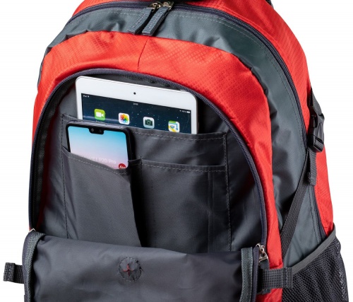 OPIS: Wodoodporny plecak z materiału ripstop z odłączanym panelem solarnym. Z portem USB do ładowania, zapinanymi na suwaki przegrodami i wyściełanym miejscem na laptop, wyściełanym tyłem i paskami na ramiona.