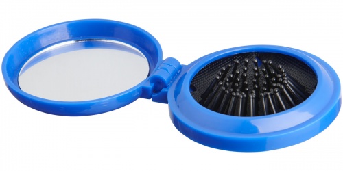 OPIS: Praktyczny zestaw 2w1, czyli składana szczotka w okrągłej obudowie z chowanymi igiełkami wraz z lusterkiem. Całość w plastikowej, jednokolorowej obudowie. Plastik.