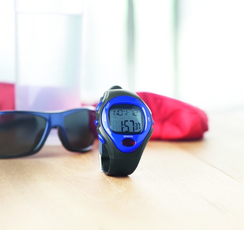 OPIS: Klasyczny, sportowy zegarek dodatkowo z funkcją daty, budzika dziennego i sygnału godzinnego. Personalizowany, ponieważ ma funkcję mierzenia pulsu oraz kalorii.