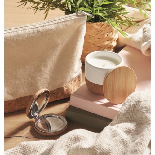 OPIS: Świeca o zapachu świeżego lnu z wosku roślinnego w kamionkowym pojemniku z bambusową pokrywką i korkową podstawą. 80 gr. Czas palenia: 7,5 godziny. Bambus jest produktem naturalnym, dlatego mogą wystąpić nieznaczne różnice w kolorze, wzorze i rozmiarze.