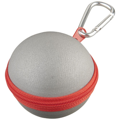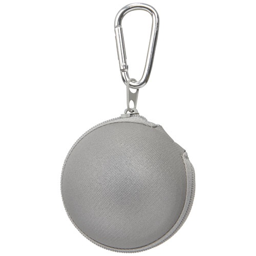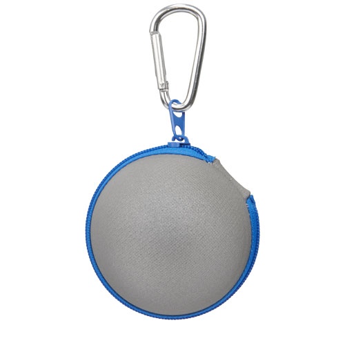 OPIS: Okrągłe etui na klucze w kształcie meteoru. Zamek jest dostępny w 5 kolorach: czarnym, szarym, niebieskim, czerwonym i żółtym. Do etui przymocowany jest karabińczyk. Można w nim przechowywać również ponczo lub pokrowiec na plecak. Średnica 7 cm. Poliester, Pianka EVA.