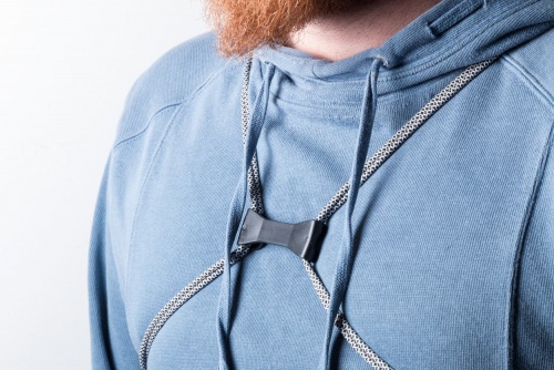 OPIS: Worek ze sznurkami wraz z plastikowym klipem do łączenia ze sobą sznurków na wysokości klatki piersiowej. 190T poliester.