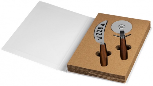 OPIS: Zestaw do pizzy Nantes 2-częściowy. Czas na pizzę! Nóż i przecinak do pizzy aby łatwo pokroić ulubiony przysmak. Zapakowane w pudełko upominkowe Avenue. Karton, stal nierdzewna i drewno.