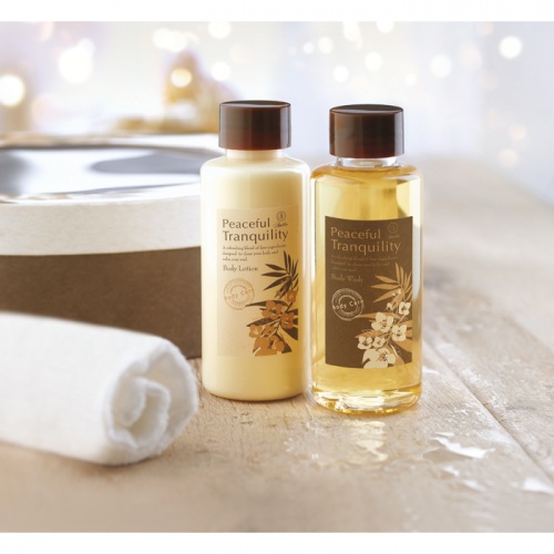 OPIS: Zestaw kąpielowy zawierający żel do mycia, balsam do ciała oraz myjkę. Pakowany w okrągłe pudełko.